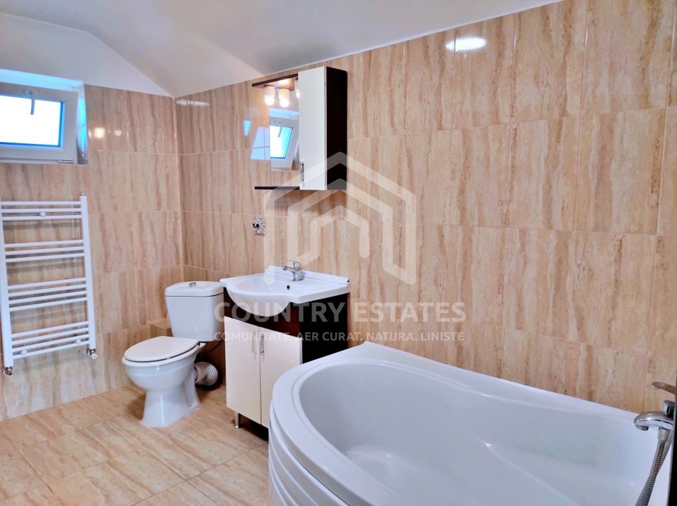Proprietate individuala P+1 Etaj de inchiriat in Corbeanca, 4 camere dintre care 2, maxim 3 dormitoare nemobilate, sau 2 dormitoare la etaj si un birou open space in functie de preferintele potentialului chirias + living nemobilat + bucatarie mobilata si utilata, langa Paradisul Verde, zona noua intre lac si padure.