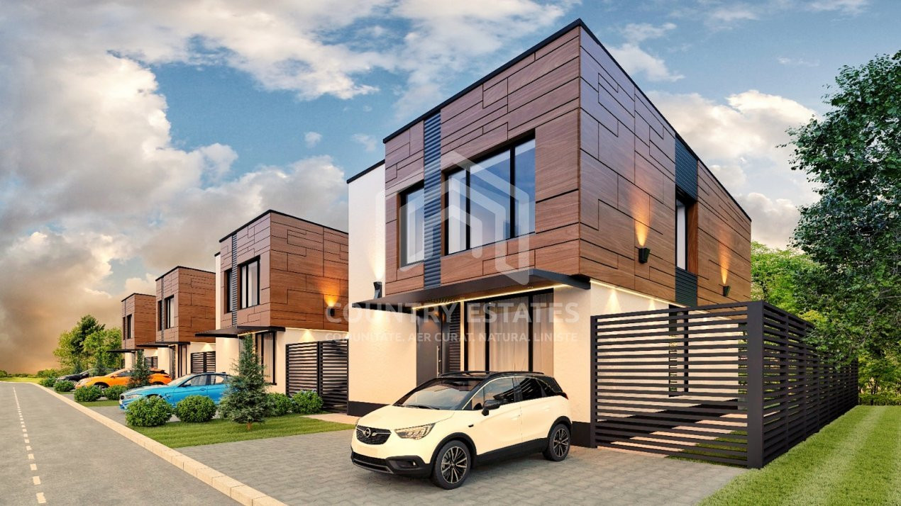 Asadar, va propunem spre vanzare o casa a viitorului in regim P+1, situata in complexul PARADISUL VERDE, cel mai exclusivist cartier rezidential din nordul Bucurestiului, unde beneficiezi de paza 24/7, sala de fitness, centru SPA, restaurante, piscina, gradinita, locuri de joaca pentru copii, cabinet veterinar, cabinet stomatologic, terenuri de tenis si fotbal si cel mai important de vecini de buna calitate.